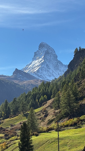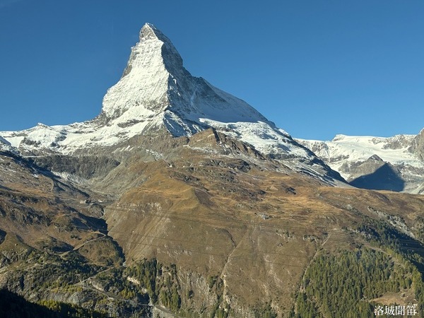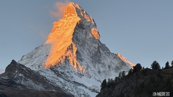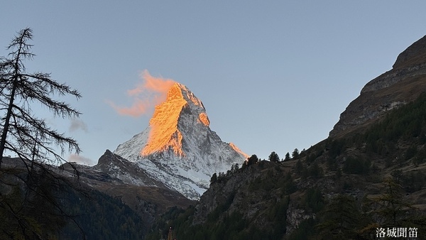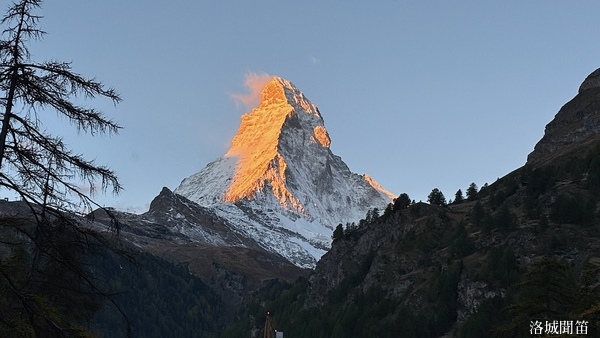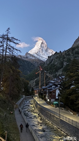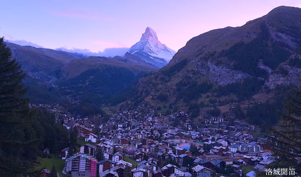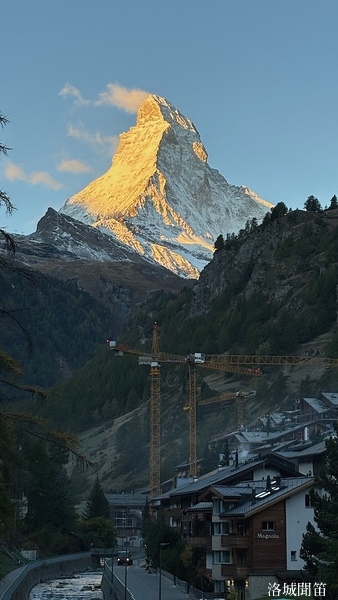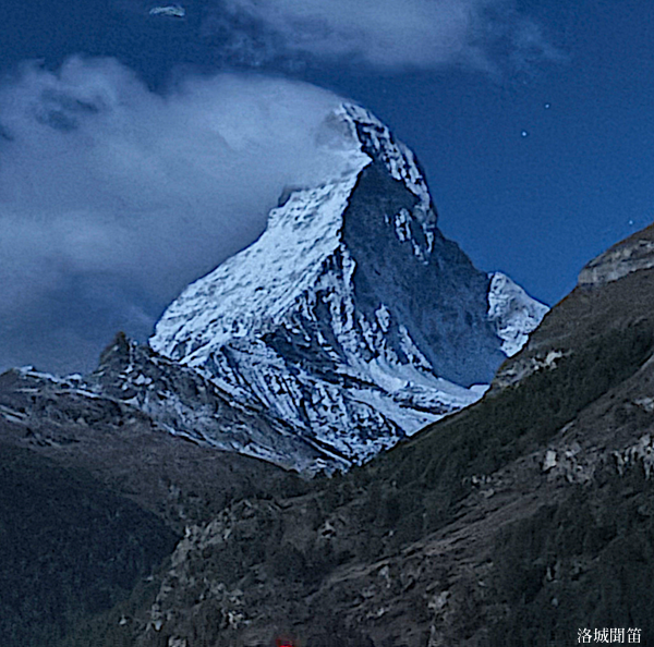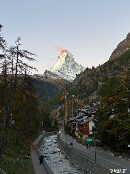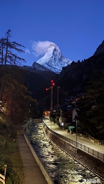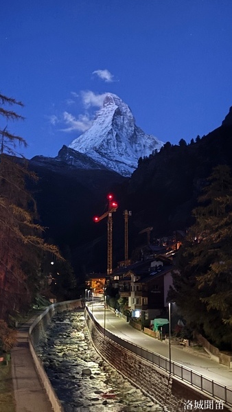 黃昏中的馬特洪峰不再如日出時那樣熾烈,也不同於月夜下的銀白聖潔,而是呈現出一種介於光與影之間的溫柔。它靜靜守望著脚下的小鎮,也守護著無數人的夢——那些為了遇見它而遠道而來的人,那些在群山之中尋找內心安定的人。