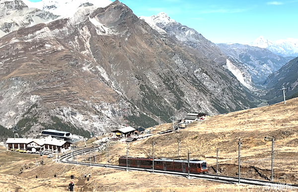 到了 Riffelberg 站,準備搭火車下山。午後的秋陽依然耀眼,亮在雪白的山巔,也亮在金色的山坡,更亮在離人的心田。
