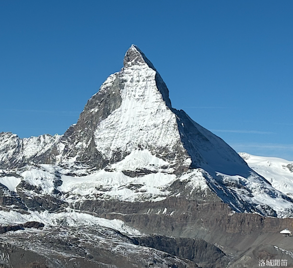 山路圍繞著馬特洪峰逆時鐘轉,它也從正面漸漸地順時鐘轉成了側面。 再一次回望,那熟悉的金字塔峰不再遙遠,也不再壓迫,而像是一位默默相送的朋友。