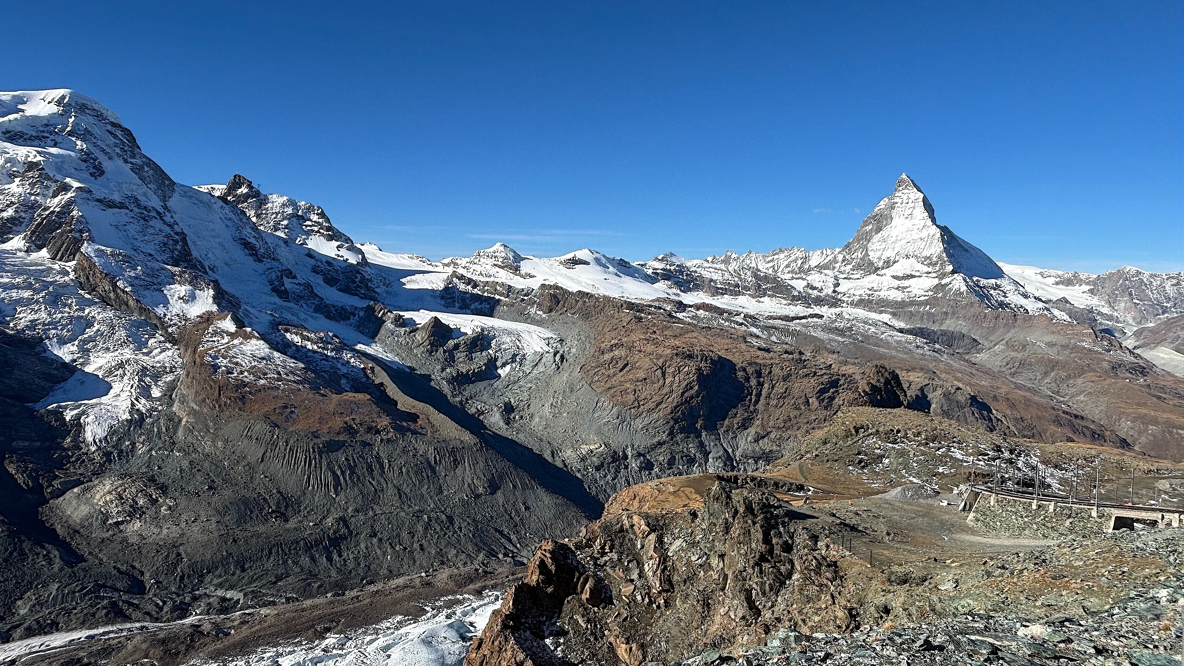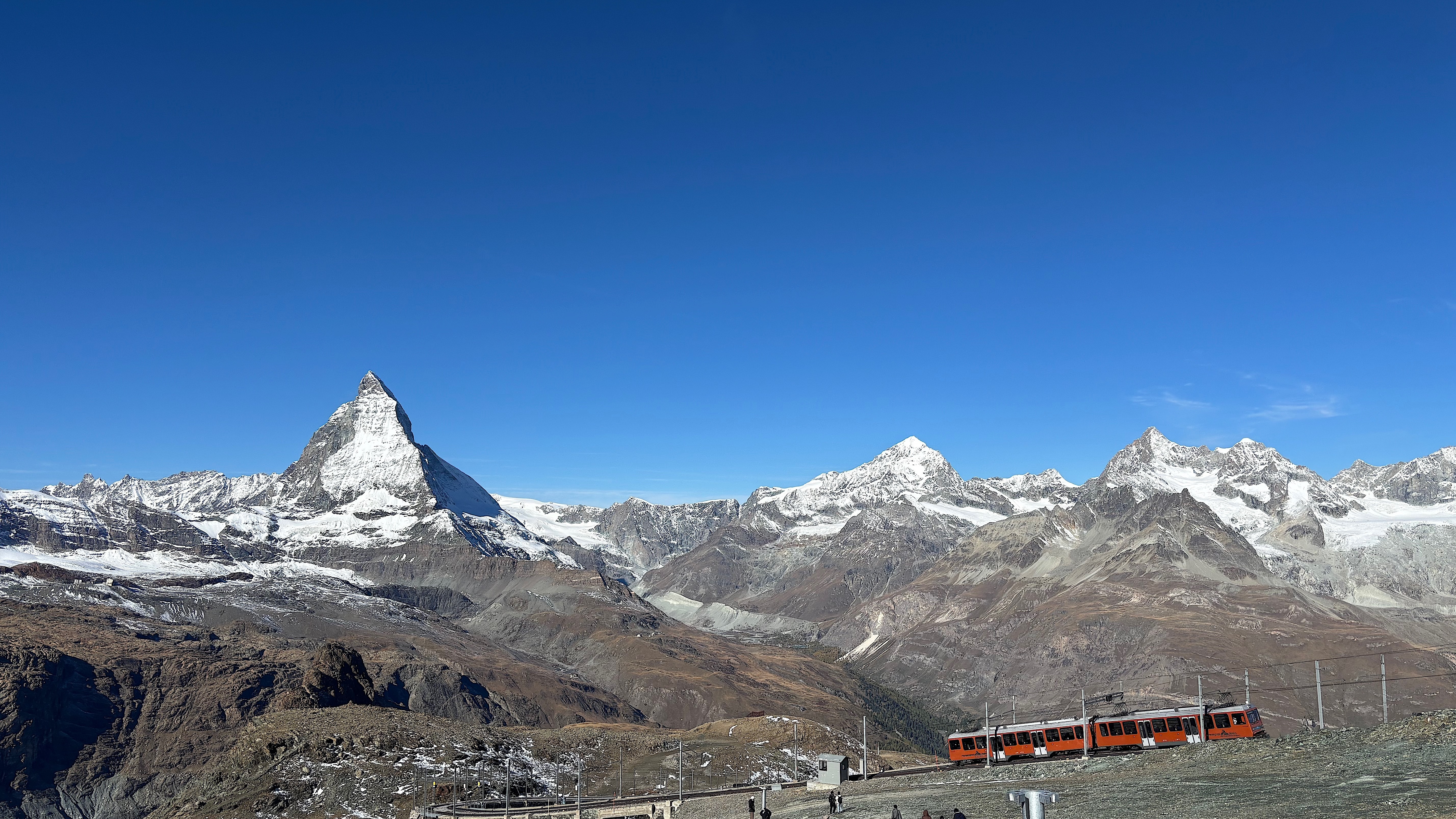 Gornergrat Bahn 的列車,載著我們前來圓夢,也載著我們回返人間。心中滿是感恩——謝謝馬特洪峰近距離的凝視,也謝謝冰川倒影的震撼。每一刻的寧靜與光芒,都帶給我們夢寐以求的幸福感。