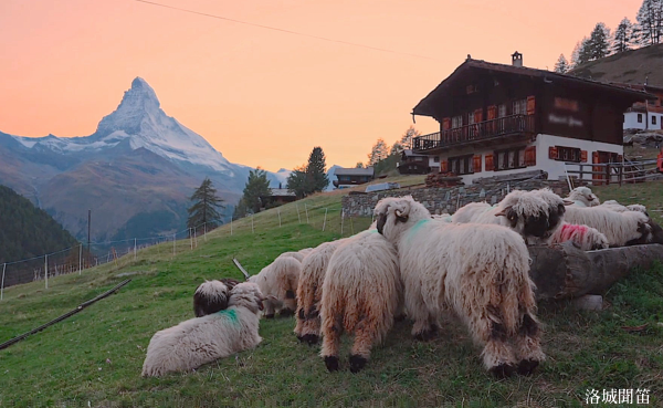 當晩霞滿天,在馬特洪峰之巔。黑臉羊兒也醉了,相擁而眠。
