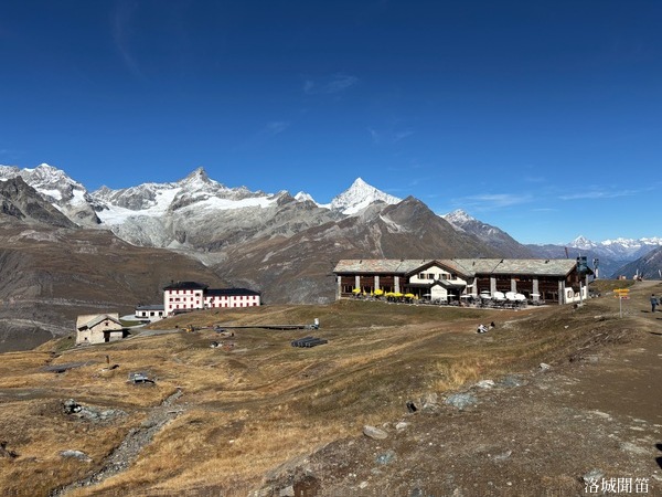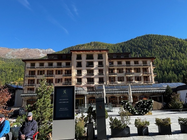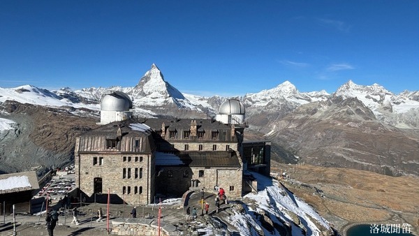 在高山積雪之鄰,有一座典雅的高山飯店——Hotel Riffelberg。黑頂、白牆、紅窗,非常醒目。建於十九世紀末,外部以石與木構成,天冷時屋簷覆著薄雪,窗框卻掛著溫柔的陽光。旅人們或坐在露台上,或倚窗而望,一邊品嚐濃郁的熱巧克力或暖湯,一邊與遠方的馬特洪峰相互凝視。