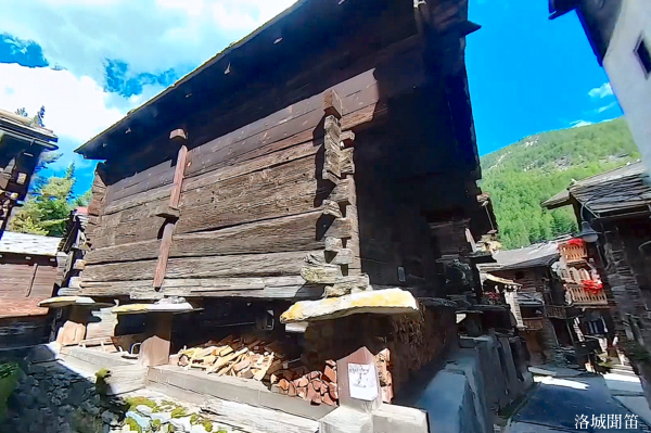 這裡至今仍保留十七世紀的高腳穀倉 (Stadel),在鐵路通車以前,曾用於儲存乾草和乾肉等食物。這些糧倉由耐虫害的落葉松 (Larch) 木製成,木材隨著時間變黑,這是暴露於日曬風雪、積年累月的結果。屋頂則多鋪大型石板,是策馬特山區老木屋防火、防雪、耐用又符合傳統的實用設計。因為在山區乾燥的氣候下,屋頂鋪石板可以有效阻止木質結構的火焰蔓延。而且策馬特位於阿爾卑斯山,高海拔地區冬季積雪厚重。木質屋頂單靠木瓦容易被大雪壓壞甚至掀翻,石板重且穩固,能承受厚雪和強風,不易損壞、不易腐爛,也不用經常更換。
