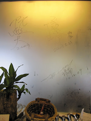 這家好吃的義大利麵餐廳,可不是只有食物會讓人感到 surprise 唷!餐廳裡的美女上菜畫像,可是大廚的親手畫作呢!嘿嘿~ 很特別吧!當俺在店裡鬼鬼祟祟探頭探腦之際,發現了一個人名:阮經天!嘿!這不是金馬影帝的大名嗎?原來好吃到連帥哥都曾是坐上賓呀!! 還有任潔玲、許瑋甯等美女的加持!果然麵香不怕巷子深,聽老闆說這家店在民生東路商圈屹立久矣,以前最高記錄巷子頭到巷子尾有將近十家義大利麵店,而現在就是他屹立不搖!