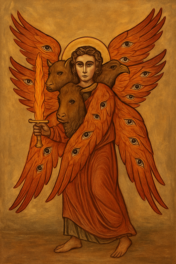 🌌 啟示錄中的「四活物」 雖未稱為智天使,但形象幾乎相同,被天