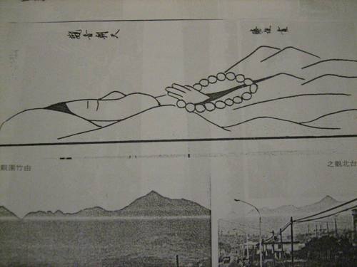 第二種仿似觀音側像:以淡水河右岸淡水、竹圍、北投一帶看觀音之側面型態的”觀形定名” 視覺化, 此說法與台中和平觀音山說法雷同。在特定位置、視角可看到之觀音山之半身法像或面容法像,這是最熱門的方式,目前整理看法就有三種,由左向右面容法像、由左向右半身像、由右向左面容法像,你認同那種看法? 嘿,我自己有第四種由右向左半身像喔,且之其為Female呢(觀世音的前世出身傳說是妙善公主)。那為何不是媽祖而是觀音呢?我認為可從臉形比例來想像喔。