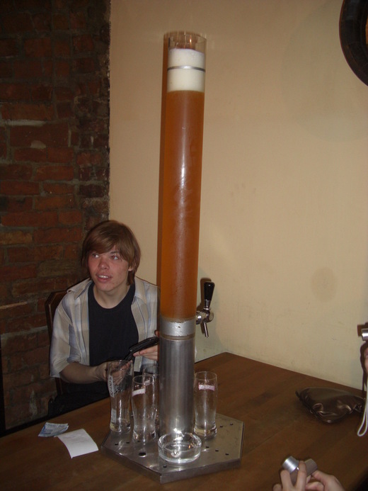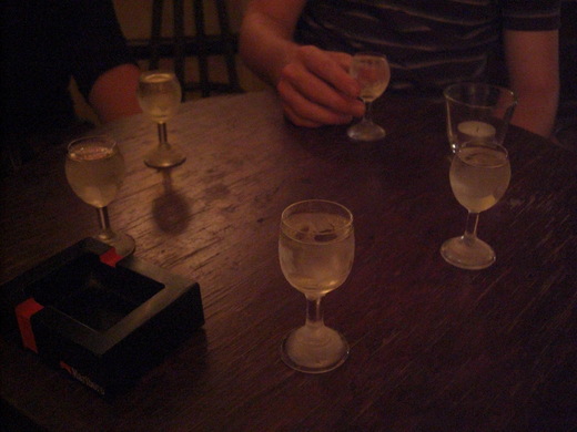 那天晚上,我們又剛好是Greg & Tom Hostel例行的Vodka Night的四個參加者之二. Hostel裡值晚班的Pitor (Peter)是我們的tour leader. 這個剛滿20歲的波蘭小男生在Krakow University裡主修日文,談起波蘭的vodka文化非常自豪,宣稱我們那天晚上每人喝四種口味的vodka shots,外加共享3L的啤酒,只是波蘭人的"baby level". 除了我和Alan,另外兩個人是來自Liverpool的一對英國姐妹,我們四個住在英國的人都自認絕非baby,然而四杯vodka shots下肚,大家都開始非常的happy. 轉戰Pub後,一大管三公升的啤酒一下子也見了底,這樣還喝不過癮,要Pitor帶我們到猶太區學生聚集的酒吧再續攤. 那晚我們五個人玩得很開心,回到hostel的單人房,我倒頭就睡,完全把要早睡早起sightseeing這回事忘得一乾二淨......