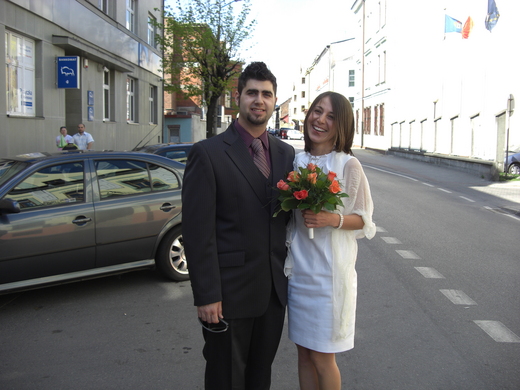 下午四點,我們一行十二個人分三部車,前往不遠的市政廳. 婚禮在一個小禮堂舉行,由一位女證婚人主持,全程都是波蘭文. 翻譯坐在Matt身邊,逐句小聲的用英文覆誦. 我們坐在Matt的正後方,卻一句都聽不清楚,只能靠猜的了解進度. 整個過程不到十五分鐘,交換戒指,主婚人宣布Ula和Matt正式成為夫妻的那一刻,我很努力的讓快樂的眼淚不要掉下來.