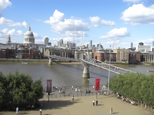 周五夜晚夕陽西下時分,天色格外美麗. 和小包沿著泰晤士河南岸散步,看到熱戀中的情侶靠在河邊的欄杆上瘋狂擁吻,他指著人家說: "妳看! 好浪漫喔!"