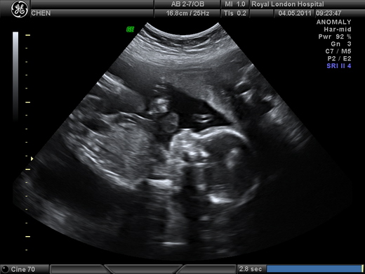 好不容易等到在台灣照超音波那一天,我打算等醫生都檢查得差不多再開口問性別. 醫生在肚子上塗上潤滑劑,超音波機在肚皮上推了幾下,第一句話就是: "是女生喔!" 我和小包沒想到問都沒問,醫生開門見山就開獎,錯愕又驚喜的微笑著互看一眼. 接下來我只記得醫生逐一檢查各部位,胎兒生長正常,手腳十指健全,但是腦子裡完全被粉紅色的喜悅占據,沒辦法認真的聽醫生的各項說明.