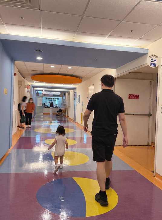 除非是打預防針或者像我們做簡單例行健檢,否則來醫院都不會有好心情,尤其小朋友身上有病痛,大人更是心疼和焦慮,因此除了遊戲區附近,候診區及各個走道皆安安靜靜,正確來說,即使在遊戲區,也有不少孩子貌似熟悉環境,獨自靜靜地摸著遊戲器材,靜靜地觀看別人,看起來早熟、沉默且孤獨,令人不捨。