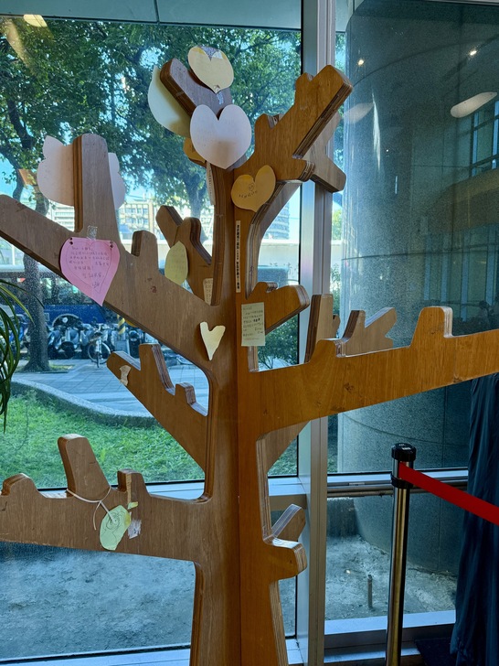 等候期間陪茶茶走路亂逛,在某個人來人往的走道,相隔不到五分鐘,茶茶在靠近牆邊的同一地點莫名跌跤兩次,茶爸仔細檢查光滑潔亮的地面卻看不出異狀,我不禁微笑告訴他,可能有人在跟茶茶玩。前方有志工熱情招呼我們拿點心,送上口罩和貼紙,所有物品任君取用。我十分驚喜,告訴她們多年來持續捐款給麥當勞叔叔之家,但還是第一次遇見基金會的服務團隊,看來真的有做事,我的捐款是值得的。旁邊一位帶著國小年紀兒子的媽媽也正在拿點心,聞言立刻說真的在做事,他們就是住在雙北之外的偏鄉,前一晚住在麥當勞叔叔之家,今天才有辦法來台大就醫,我聽了很感動和欣慰。