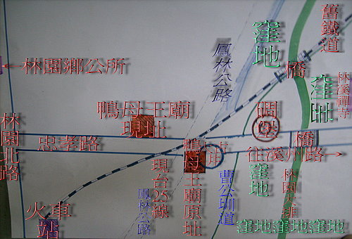 「鴨母王」指揮「鴨子陣」嚇倒了莊民官兵!就只好允許他在高屏溪岸溪埔地小村落──現溪州村和現林園村之間,「金京潭」下游「陳爺濫溝(現林園大排)」「鴨母王廟」現址(鳳林路和忠孝東路十字路口)紮舍塞牧鴨。