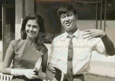 1962.09.19 記者 司馬桑敦/攝影。 ↑影星王莫愁( 左) 與日本影星石原裕次郎。 |