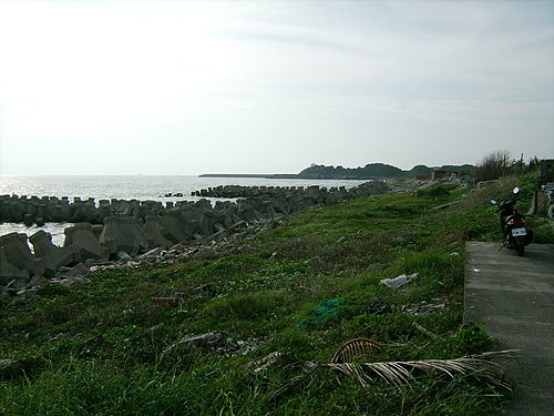 ↓(神秘的鳳鼻山近照1963年中影和日活合作拍攝的"金門灣風雲"外景現場:林園鄉中門村海岸.沙灘已堆滿消波塊!)