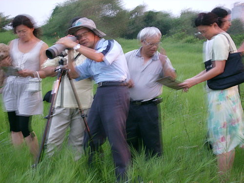 今年元月十八日星期天早晨,我又騎着機車往高屏溪口巡視「紅樹林」,在石化工業區北端堤防上巧遇洪福龍先生等兩位鳥會朋友,正用望眼鏡在聚精會神的賞鳥。我便問道;「有沒有發現黑面琵鷺阿?」「鸕鶿」!鳥友一說,我便迫不及待的停下來借用望遠鏡,哇!真是太棒啦!距離約八百公尺,一大群鸕鶿數量不下上百隻。有的在沙洲上騷首挵姿,有的在跳水上芭蕾,有的在表演捕魚絕技。好像在對我說;「你要看我嗎?請把鏡頭拉近一點,沒關係再近一點,不必跑到桂林去!」