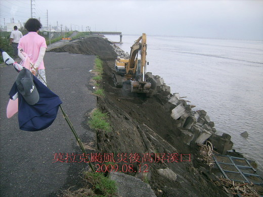 「八八水災」剛過,沖失了大片濕地和草皮,本來野草遍地,最近「咸豐草」、「蒺藜草」少了,最愛來此自然野趣、賞鳥、綠美化高屏溪口河堤之「愛」,也常遭「痟查某」、「恰查某」糾纏之「苦」。
