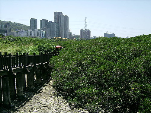 比較上「北淡水」的紅樹林自然生態保護區的生態比「南淡水」豐富許多,或是特別保護的結果。不但它是自然濕地水筆仔自然純林,更沒有「石化污染」攪局。紅樹林「四大天王」--水筆仔不但茂盛,招潮蟹成群揮手競豔、又肥又大彈塗魚活蹦亂跳,白鷺鷥、奇禽野鳥自在倘佯飛翔。誒!難怪山坡高樓大廈連雲起,嚴然是綠色森林水岸之城,幽靜人居的天堂,恨不得在此多待幾天。