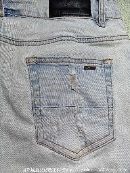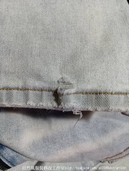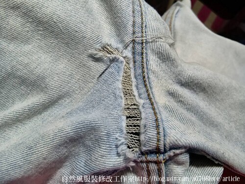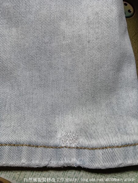 修補一件牛仔褲~是需要對牛仔褲的了解及他的顏色要如何修復,這是需要細心的觀察與布料的了解與認識。