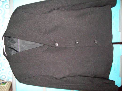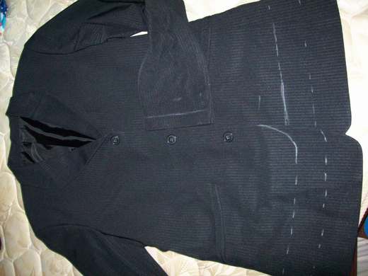 約好晚上見面時間,我等待著。他拿來兩件當他試穿上,果然有點大,而且有點老氣,他說要改短、改腰身改、袖長、後開岔、袖寬圍,當然內裡也要改。![]()