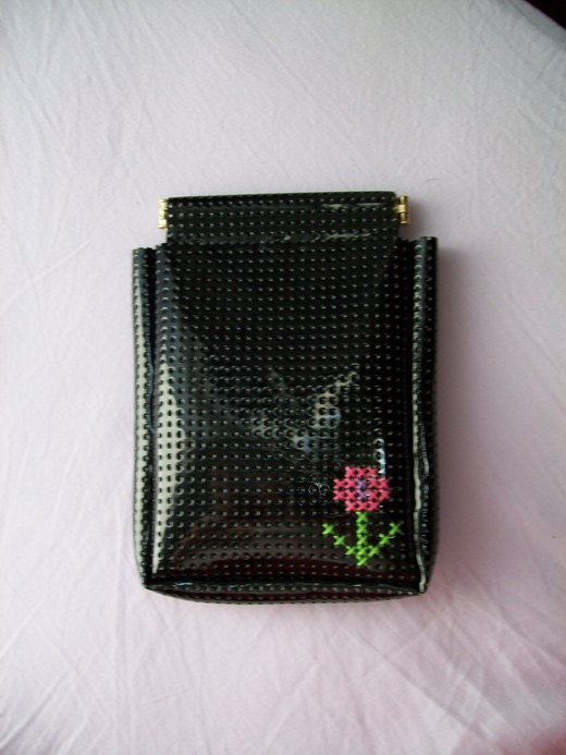 其實當中也有遇到一些小困難如擔心線快用完了,因為再去買又怕有線的色差、及當中有繡錯的 … ,都一一的克服困難,最後要裝上口金,自己較沒力氣,有請 阿娜達幫忙完成,好開心喔!