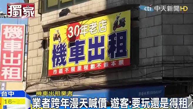 機車租車業趁年節漫天喊價,甚至多年的中古車也拿來出租,許多遊客遊客明知被敲竹槓,也無可奈何。