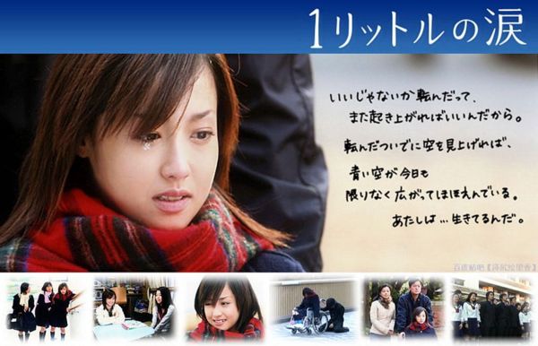 由知名人氣偶像澤尻英龍華及錦戶亮領銜主演的「一公升的眼淚」,首播便在日本創下高收視率,片如其名,是一部賺人熱淚的感人戲劇。改編自真人真事,女主角木藤亞也於抗病期間所寫的日記出版成書,首刷便創下二十六萬本的銷售紀錄,近年來更陸陸續續翻拍成電影及連續劇。片中亞也罹患「脊髓小腦萎縮症」,面對無情病魔的侵襲與嚴酷現實的考驗,她選擇勇敢面對,不逃避、不退縮,以積極的人生態度渴望繼續生存,藉由日記傳達己身的意念,此舉不知道感動了多少人,不知道又讓多少人找回生存的目的。