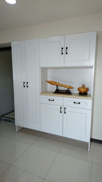 客廳鞋櫃與置物櫃 廚房 ↓冰箱櫃旁的收納櫃 ↓電器櫃 全部接連為一體,方便使用 主臥 ↓簡單的小床頭 次臥 一整面的大空間收納~ 白色讓空間具有放大感,並不會覺得擁擠。 床頭上方不僅可以擺放東西(手機...