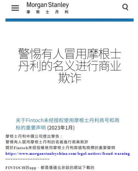 FINTOCH“分投趣”是假冒摩根士丹利公司名義進行非法金融詐騙,最近真正的摩根士丹利出來闢謠了