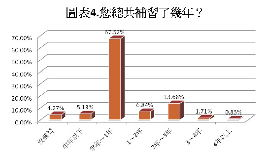 既然要補習,那麼究竟要花多少時間蹲補習班呢?(圖表4)