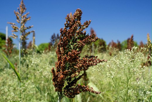 高粱性極強健,本省任何地區均適合生長,在中部地區,常有飼料廠貨運散落少數種子,而自生於路旁雜草間,不但能生長旺盛且結實纍纍。栽培地以排水良好之肥沃砂質壤土最佳,新開墾的旱地生長亦極旺盛,日光照射需良好。抗旱力極強,對於氣候適應性廣,生長氣溫只要不低於15度C,均能成功栽培。施肥方面,在整地時即在土面施入堆肥,混入土中,並施用少量三要素作基肥,播種成苗後經30天,再施用1次三要素作追肥。施用時應離植株15公分以上,以防肥害。高粱自抽穗後35~40天,莖葉變黃而子實堅硬變色時,即以以鐮刀割穗採收,經晒乾後用脫粒機脫粒。〈圖片拍攝於金門〉