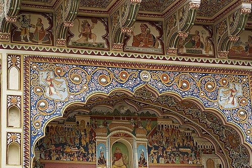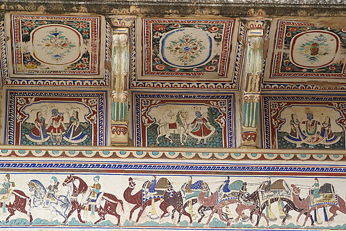 在曼達瓦城內,屹立許多18-19世紀之間的哈維利Haveli建築。這些哈維利建築是古印度來往絲路經商而致富的商人所建。這些建築主要特色就是在房宅窗櫺四周和牆壁上,都繪飾著風格鮮明的彩色壁畫。經過數百年的風吹日曬雨淋,這些彩色壁畫依然栩栩如生、艷麗如昔,可以想像當時富商住宅的豪華程度了。其風格獨特的建築及極具特殊風味的壁畫在在令人讚賞,對喜好美術繪畫或是建築的人而言,特別有一定的悸動!
