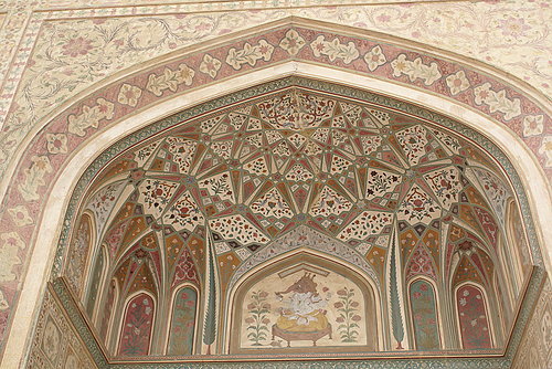 這裡是王公和他的皇后與350位後宮嬪妃的居住所,當首都於18世紀遷移到捷普後,琥珀堡便遭到遺棄,不過也因為如此,才能保有當年皇宮的規模。從遺留下來的建築遺跡看,可以探究出蒙兀兒帝國的建築藝術。琥珀城堡的建築物由不同時期的宮殿組成,包括有象頭神門、公眾大廳、勝利廳、歡喜廳、虛什瑪哈勒、蒙兀爾花園等。雖然整體來說有些破舊,不過仍舊可以依稀觀賞到當時華麗的設計。