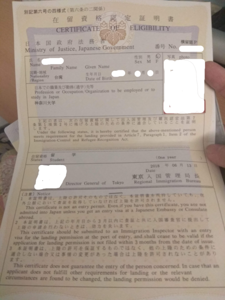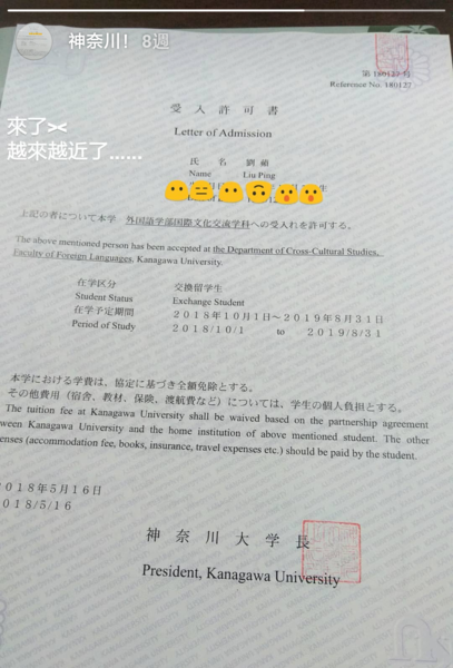 過幾天,在留證明和入學許可也寄過來了!!!!
