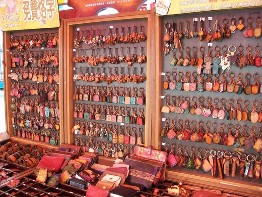 台南縣復健青年勵進會的皮雕展售. 會場有數十攤各鄉鎮的農產 品