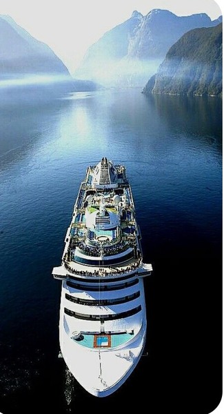 剛開始,我跟大夥都往裡面走,後來我發現,上面還有一層,我往樓上的方向望去,看見綺麗的天空,那天空真的好美,好美….然後碰到(船務員)