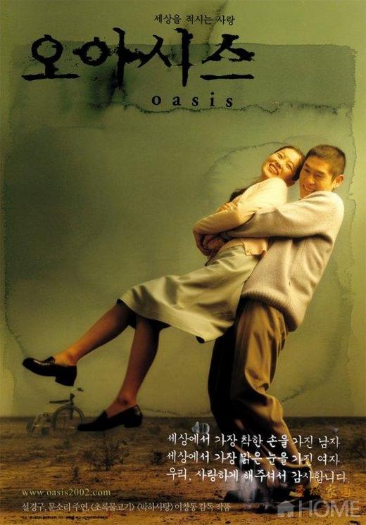 電影是無邊無界的,綠洲中文素利飾演的”恭洙”角色,首先她不能行走,代步的工具是輪椅,語言的表達有困難,兩隻手也無法靈活運用,也就是說她是一個無法完整表達自我意思的人,相對地文素利的恭洙是深刻寫實的人物。