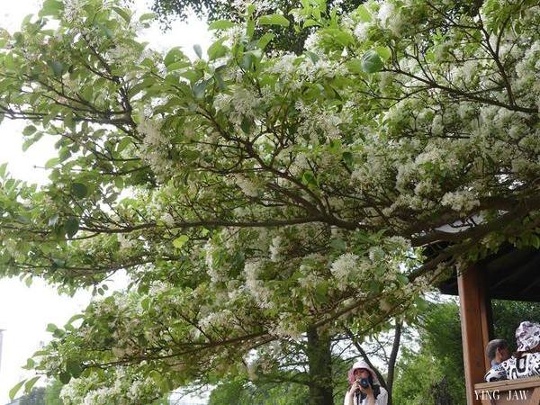 大湖紀念公園的流蘇花在這春末之際開的一片