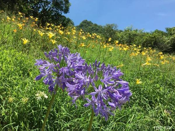 一片綠草下藍紫色的百子蓮,浪漫了整條清境步道。