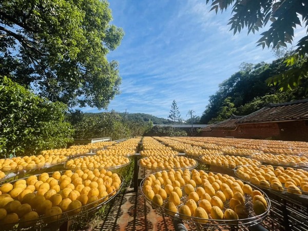 金漢?餅教育農園是當地極具代表性的特色農園之一,以傳承三代的柿餅製作技藝聞名。園區內保留紅磚瓦造的古樸三合院與曬柿棚架,每到秋季九降風起,滿園金黃柿子層層堆疊,形成壯觀的曬柿景象,吸引無數遊客前來打卡拍照。除了欣賞傳統曬柿風光,遊客還能親手體驗柿染DIY活動,從果實到工藝,感受柿子文化的魅力。