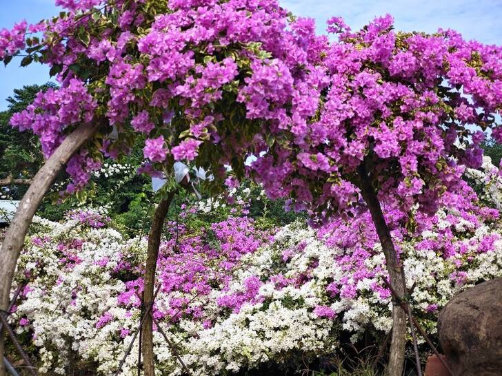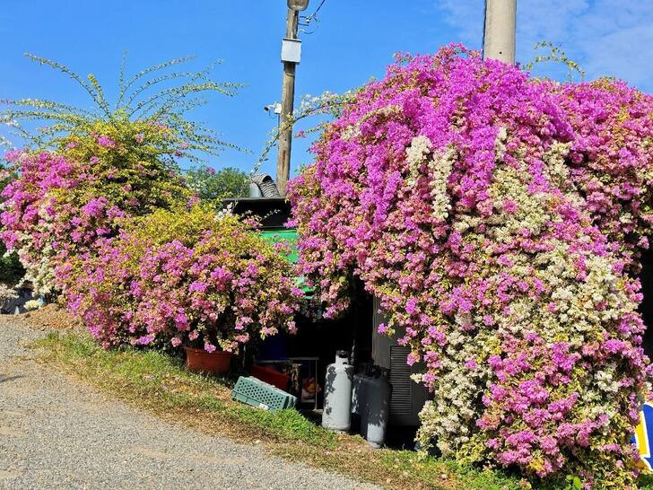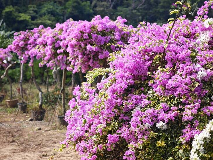 竹山鎮黃山秘境餐廳,九重葛花盛開中,餐廳的老闆佛心,免費開放給遊客拍照欣賞,希望大家發輝公德心,好好愛護園區的花木。