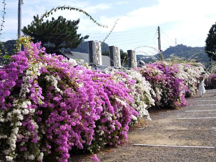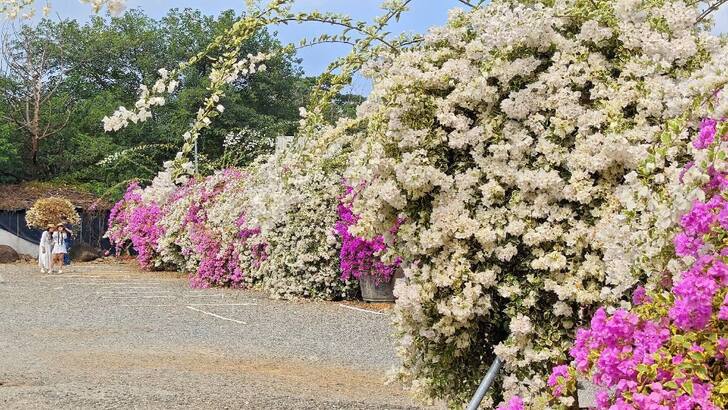 南投竹山鎮暗藏一處夢幻秘境餐廳,入口停車場旁種滿上百株擁有繽紛花色的九重葛,七彩花海拍起來相當亮眼,比人還要高的花牆,隨手一拍都是吸睛美照,輕易拍出被花朵重重包圍的景致,建議可以避開餐廳尖峰用餐時間造訪。這處秘境也曾被網友譽為「最好拍的九重葛景點」,拍完美照還可以順道享用充滿家鄉味的放山雞、活魚等料理,兼具視覺與味覺雙重享受。
