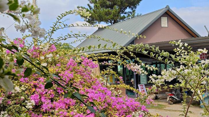 竹山鎮黃山秘境餐廳,九重葛花綻放美麗
