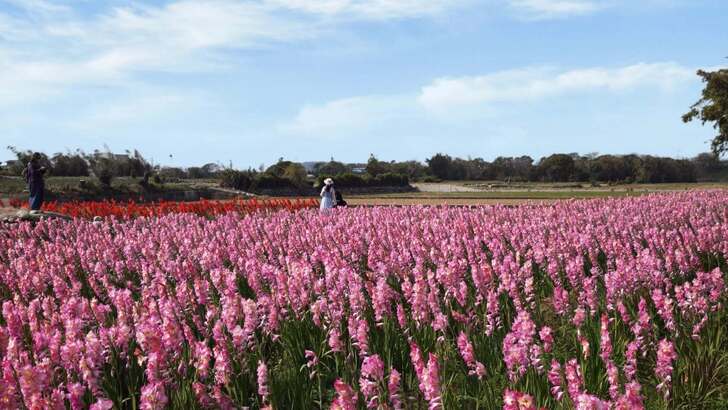 這片美景美到讓人尖叫~重點是完全免門票!女園主透露,原本這些劍蘭是為了採收種子,但因為來不及採收而意外大爆開,本來這幾天就要剷除,但看到許多遊客特地前來拍照,園主決定「再多留幾天」,把這片美景免費分享給大家欣賞。不過要注意囉,花期真的不等人,預計只開放到「這週日」,之後就要進行種子採收作業了。想追這波限定美景的朋友,快把握最後倒數的機會!