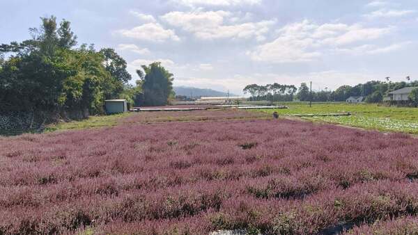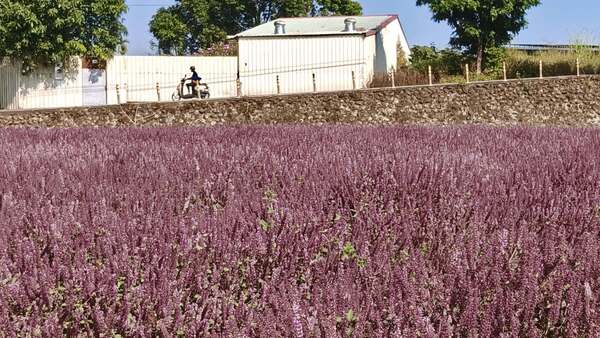 南投竹山鎮首見紫色仙草花海,展現猶如薰衣草般的紫色花毯。
