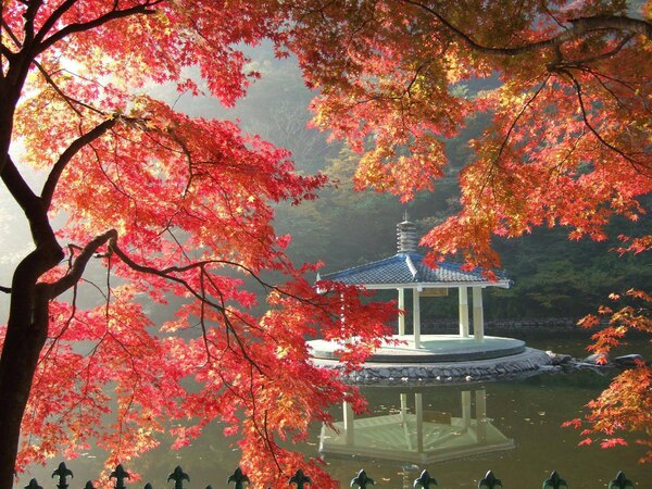 他抬頭,瀑聲依舊,丹楓依舊,而她的身影,已融入秋江之中。