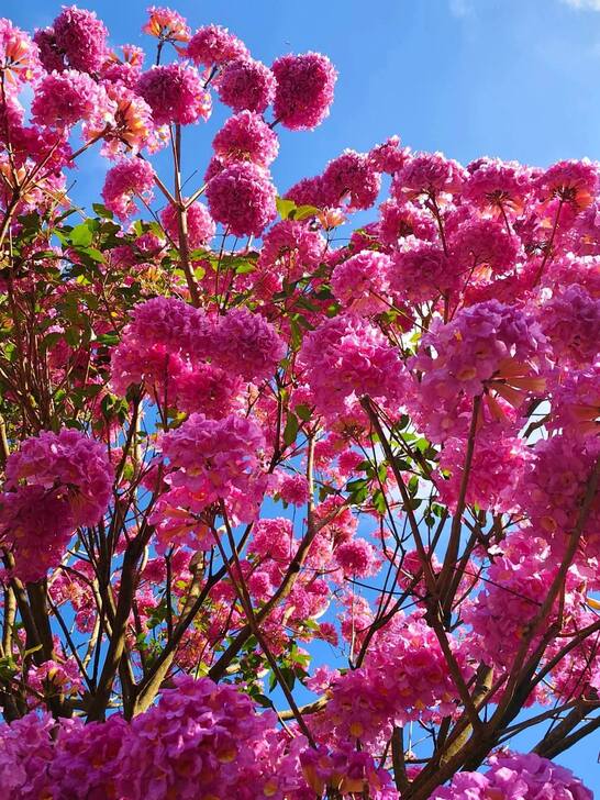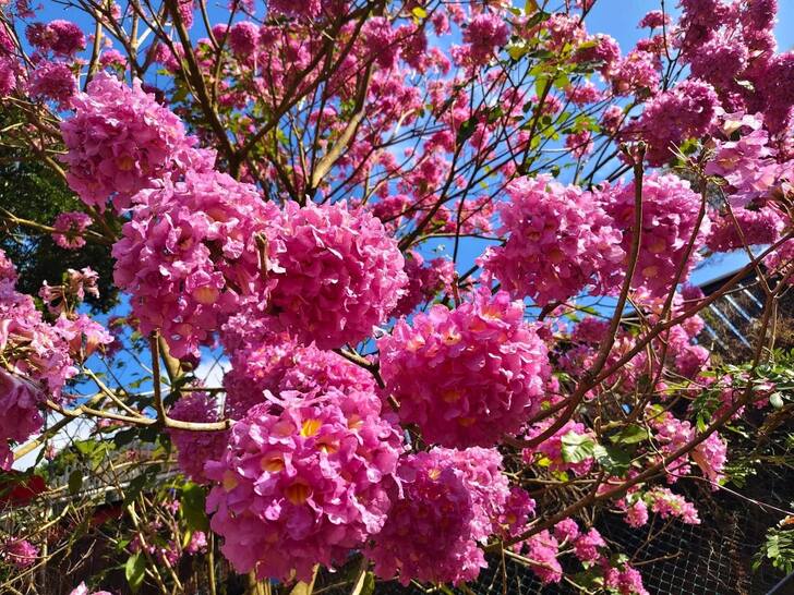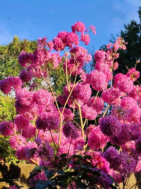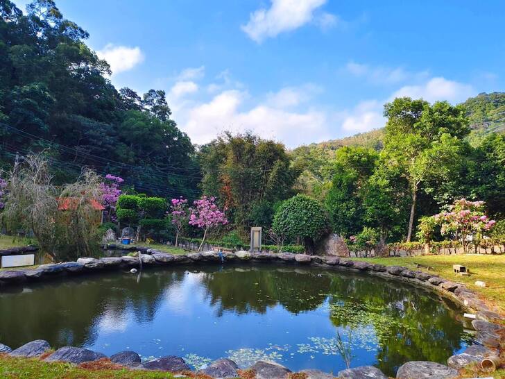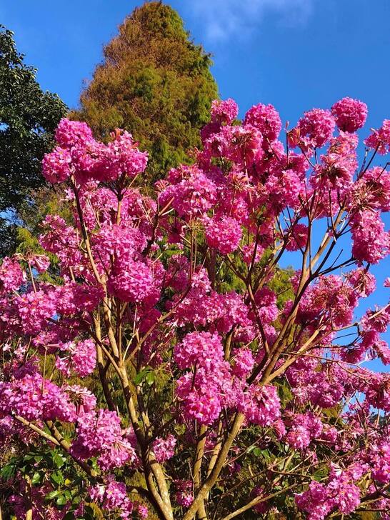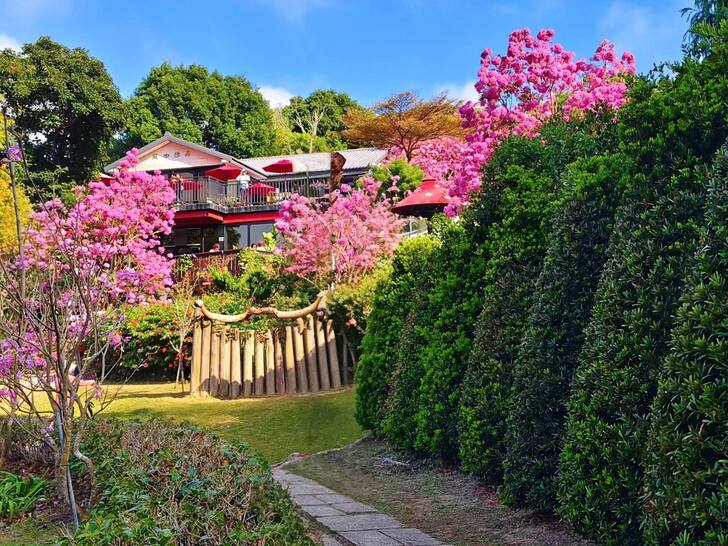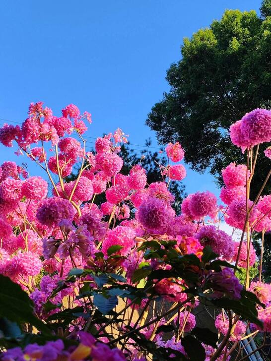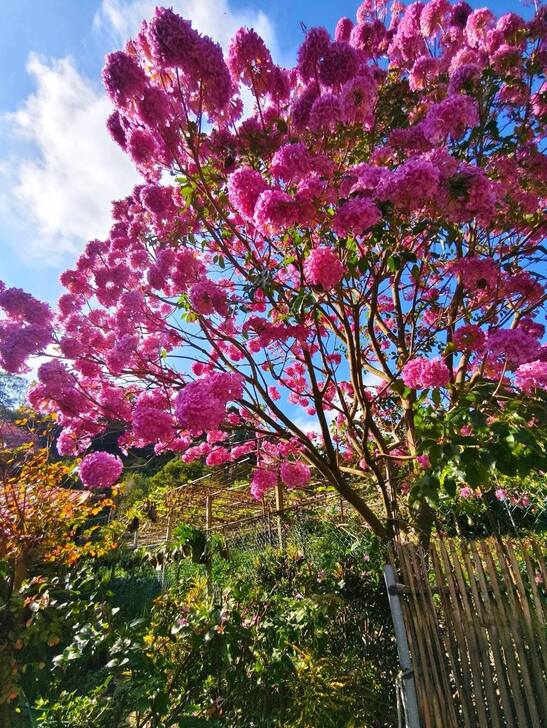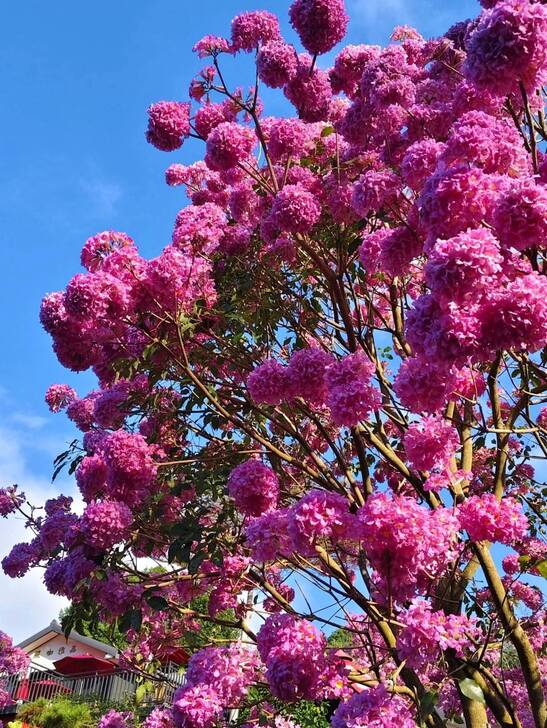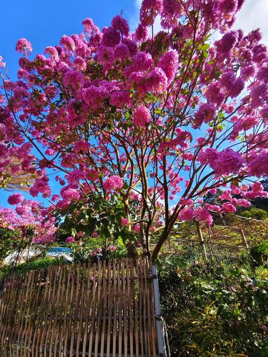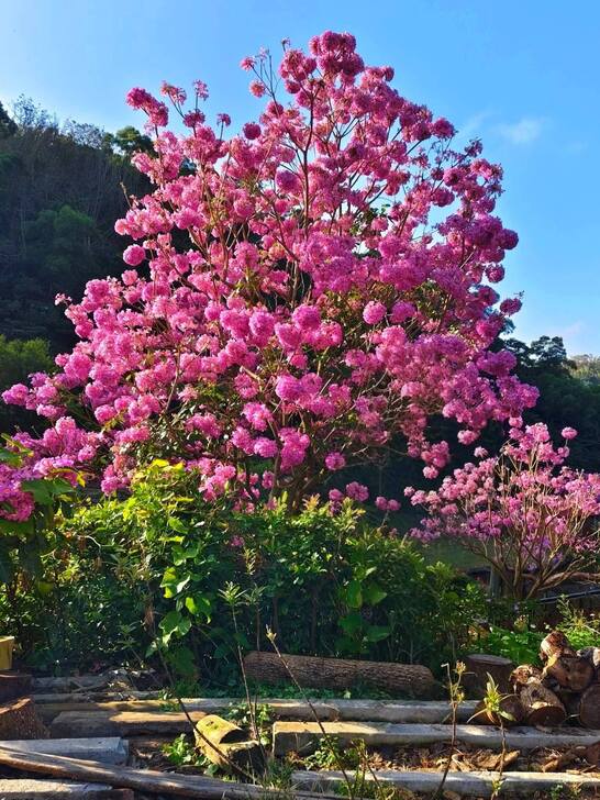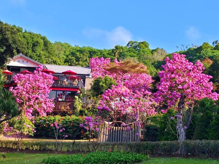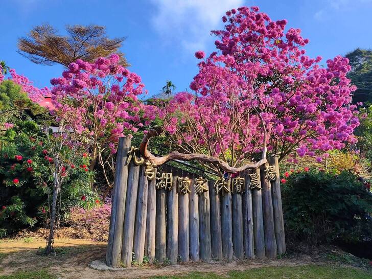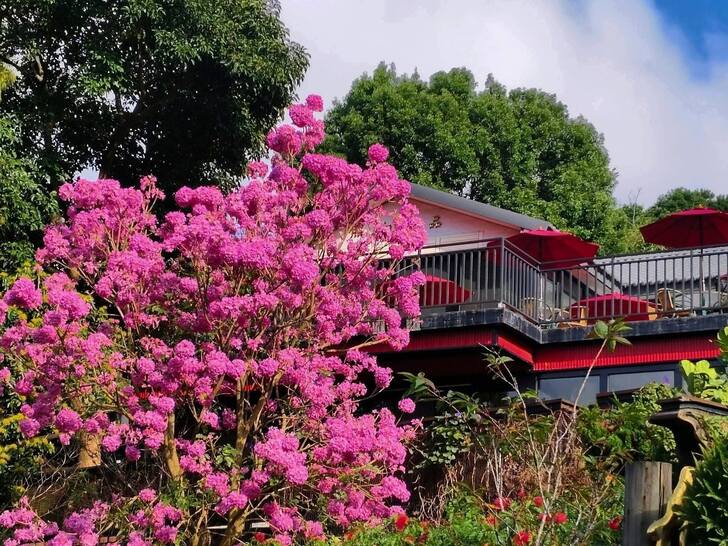 新埔鎮陳家休閒農場好美啊!洋紅風玲木燦爛盛開