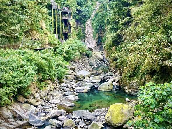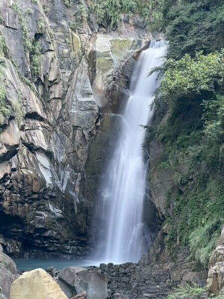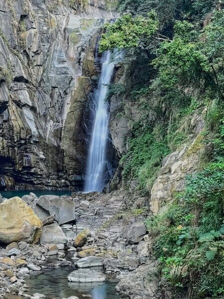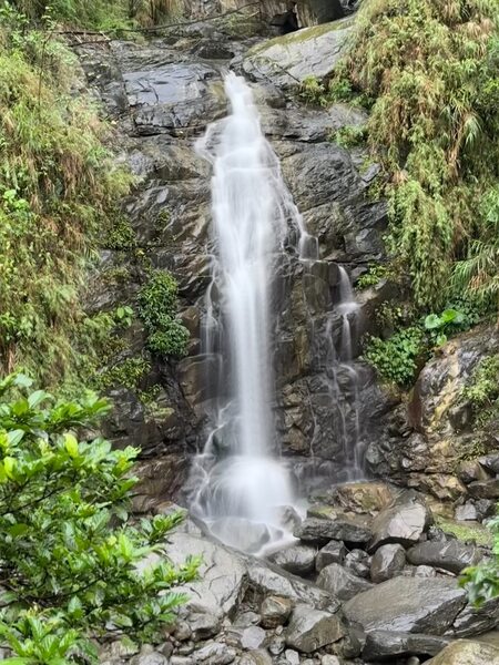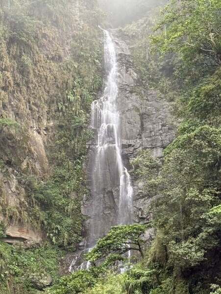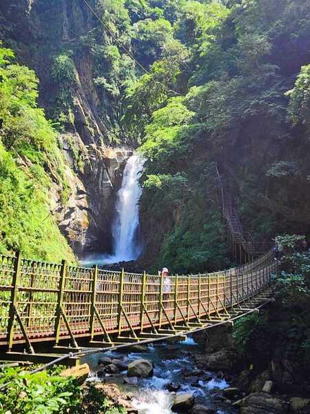 漂谷雨是觀音瀑布的第二層 — 在嘉義縣竹崎鄉溪心寮-觀音瀑布。嘉義 #觀音瀑布 位於嘉義縣竹崎鄉,因遭受921地震的衝擊被封塵了21年之久。觀音瀑布位處峽谷,兩壁青翠如茵,谷底奇石嶙峋,由上而下共有四層,其中以第四層 #酷似觀世音菩薩披白紗顯靈於瀑布中,故名為觀音瀑布。(來自嘉義旅遊網) 瀑布當然在山裡,在高處,不想走路的話有自費的接駁車載到售票口,其實進去還是要爬鋼構四層樓才可以到瀑布,看到拿著嬰兒車的父母傻眼了。現在只開放走到第二層,也就是只能看到遠遠的,小小瀑布。有個浪漫的名字:#飄谷雨,所謂的酷似觀音顯靈於瀑布中,只能靠想像了。