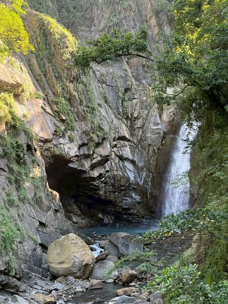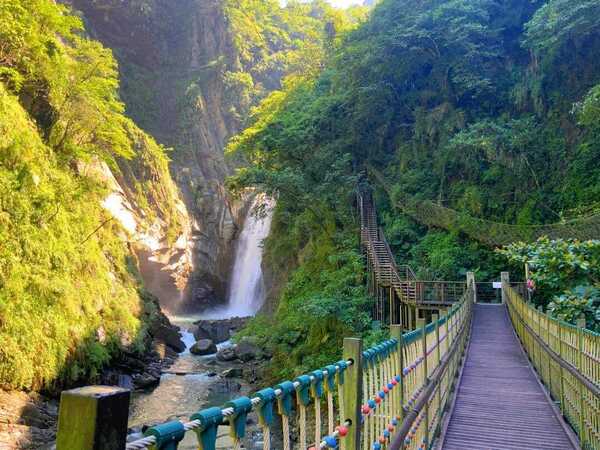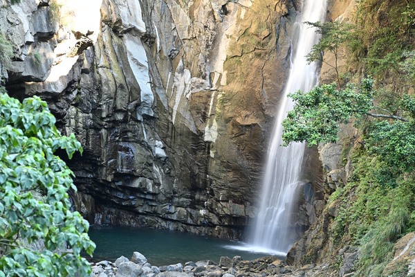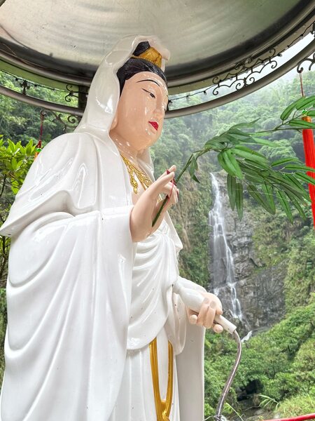 觀音瀑布地址:嘉義縣竹崎鄉文峰村溪心寮44之1號營業時間:每週四休園,0800-1700嘉義縣竹崎鄉觀音瀑布,過去曾是5、6年級生約會踏青的口袋名單及遊客避暑的觀光勝地,因瀑布從山崖沖下時很像觀音立像而聞名,觀音瀑布位處峽谷,兩壁青翠如茵,谷底奇石嶙峋,由上而下共有四層,其中以第四層酷似觀世音菩薩披白紗顯靈於瀑布中,故名為觀音瀑布。全境環境清幽、風景絕佳,是早期踏青旅遊的好去處,民國50-80年代是觀音瀑布遊客最多的鼎盛時期,周邊觀光服務產業也是當時在地居民主要的經濟來源。