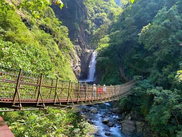觀音瀑布之旅,景色優美,觀音瀑布風景區的四周為群山環抱,溪谷兩岸峽谷均為峭壁,設置全新步道、吊橋及旅客休息區,山水環山圍繞 詩情畫意盡收眼 藏在深山的「飄雨谷」~嘉義竹崎的觀音瀑布風景區,整個風景區內共有8座瀑布,各有不同的優美景致,有的從高山頂峰沖瀉而下的磅礡大瀑,有的是涓涓細流的小巧流瀑,百餘公尺上層湧下的瀑布,激盪起陣陣水花,細雨的日子,山谷煙雨濛濛,飄飛谷雨景象又被稱為是「飄雨谷」。